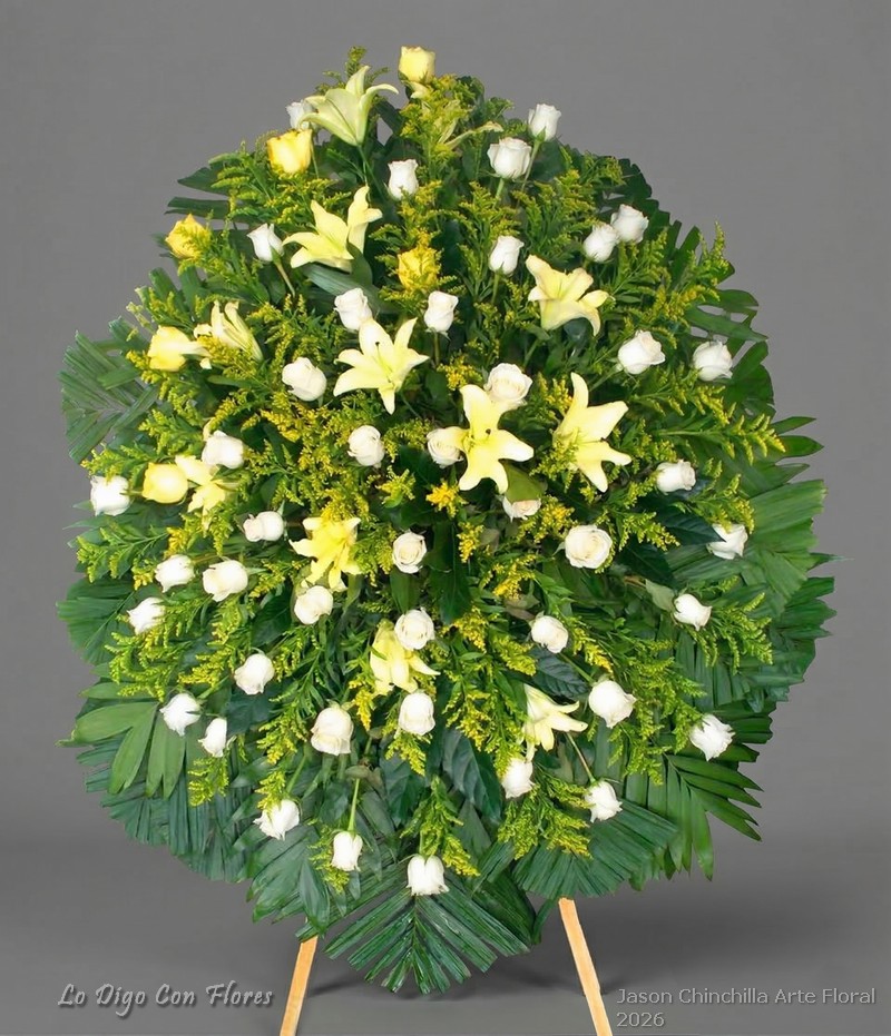 Cada arreglo es preparado por el florista respetando el estilo, tamaño y combinación de colores ofrecidos, procurando una presentación sobria y adecuada para ceremonias de despedida, velas, misas, novenarios y ocasiones similares. Incluye tarjeta de condolencias donde puede indicarse el mensaje que se desea enviar.