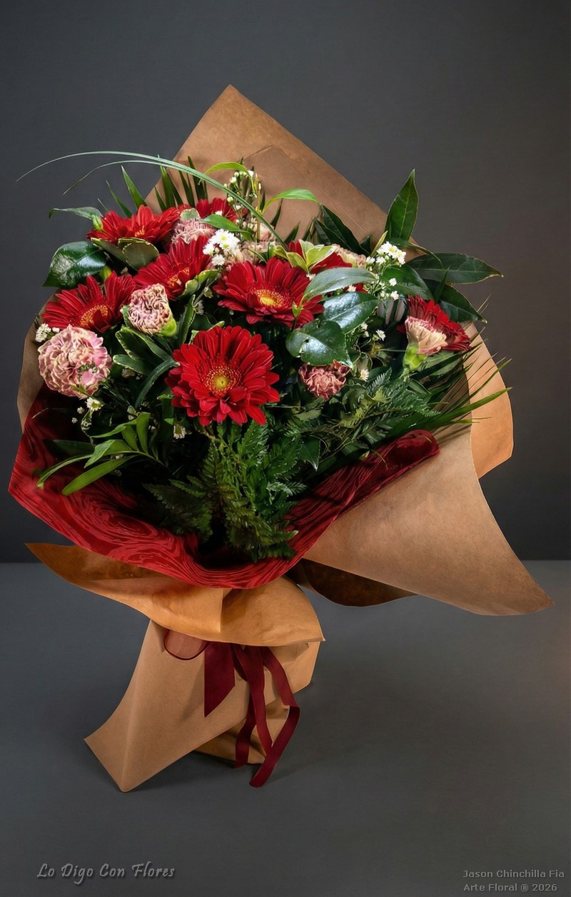 Gerberas y claveles en ramo
