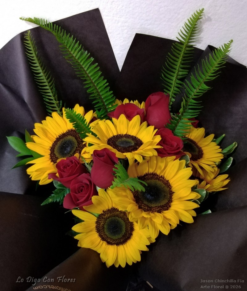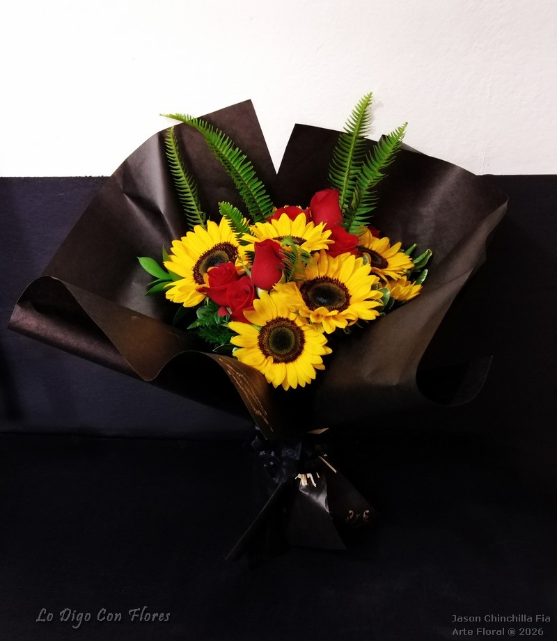 Ramo de girasoles y rosas