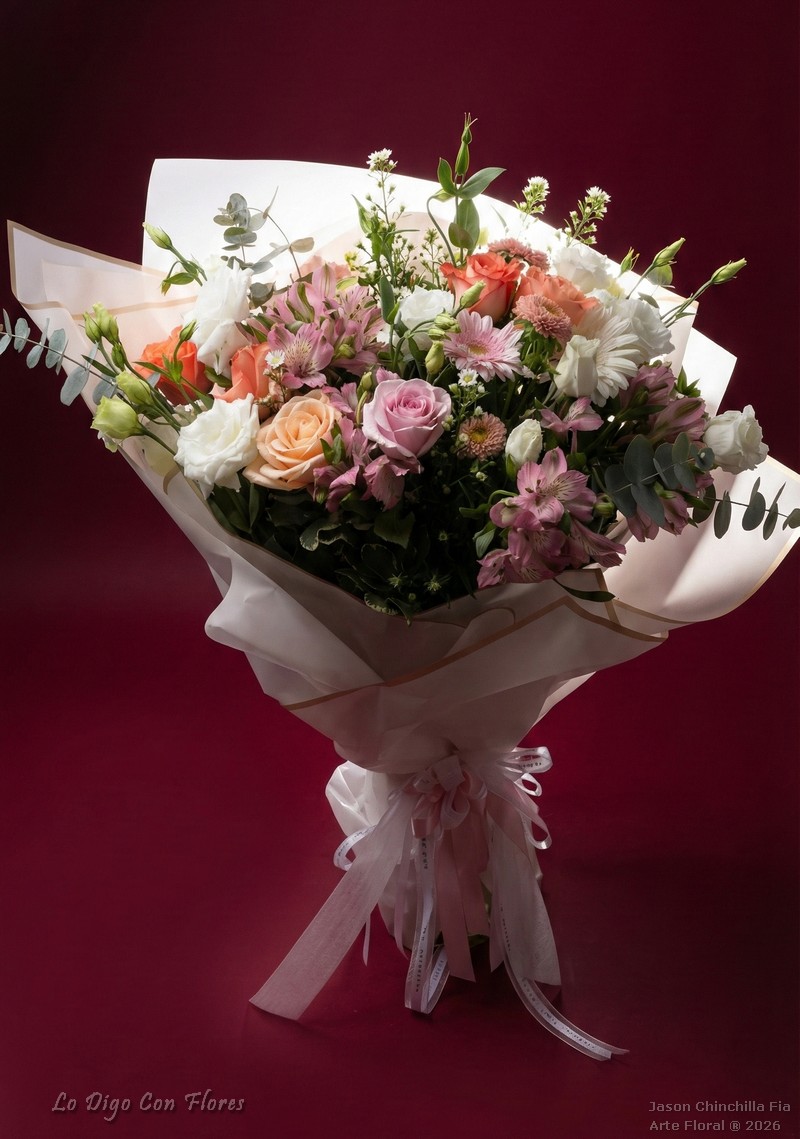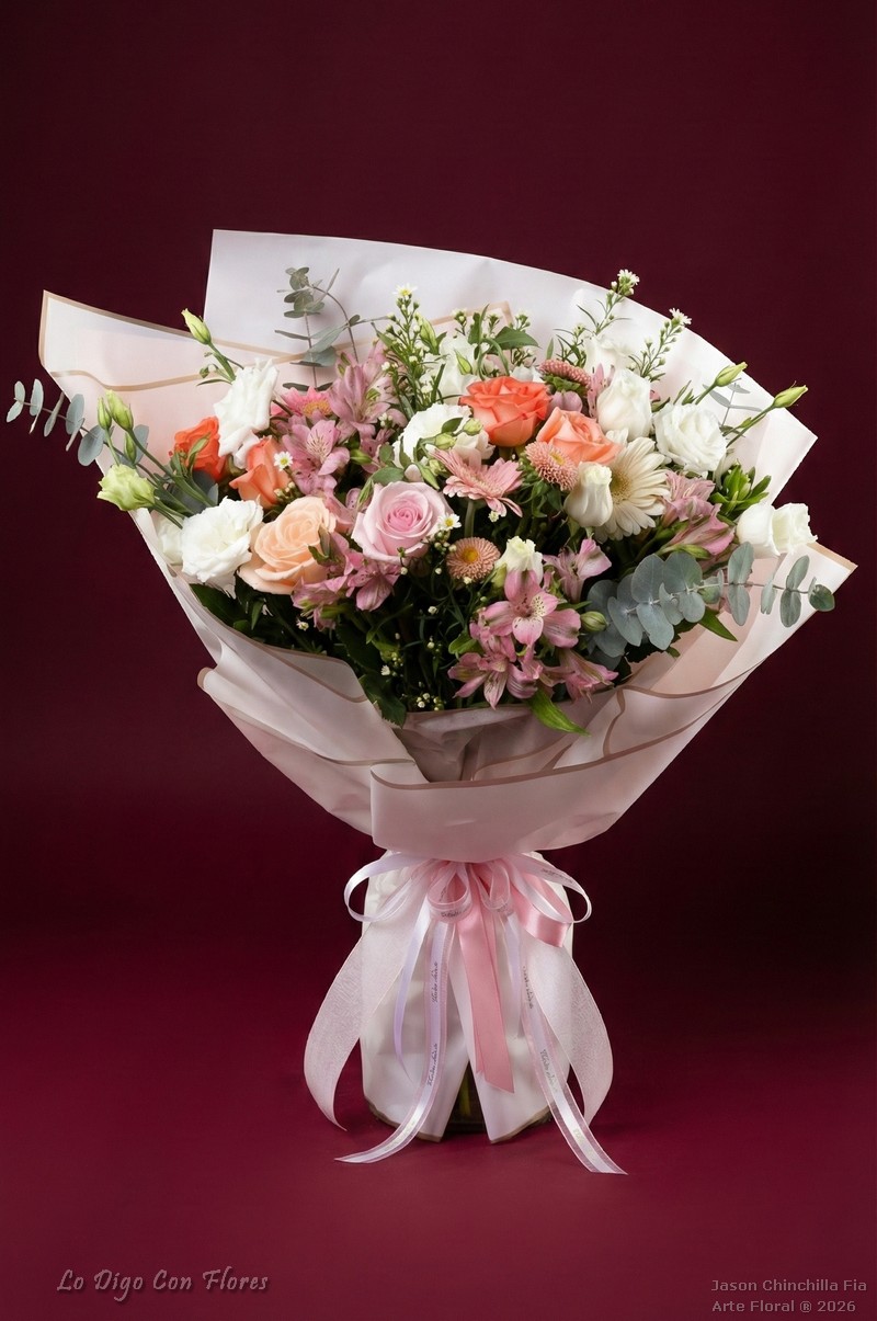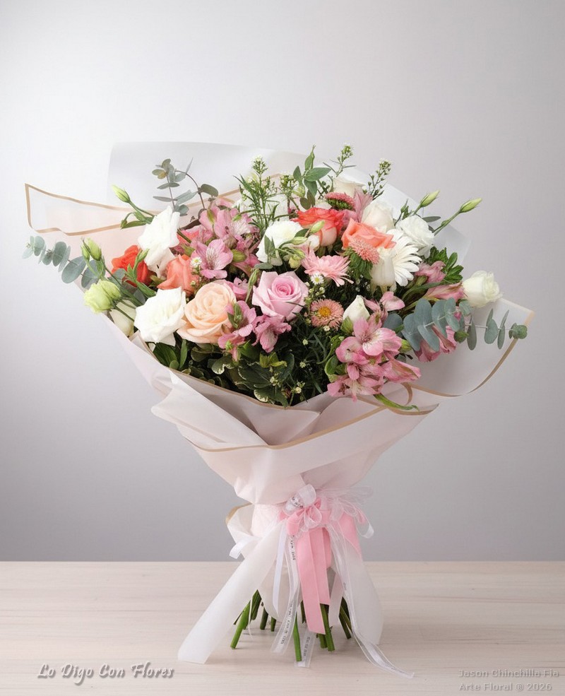Incluye: Gerberas, lirios, claveles, astromelias, rosas, margaritas, popis, y/o otras flores según disponibilidad de flor y color.