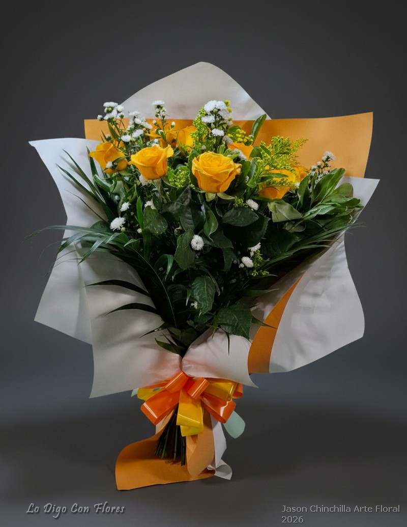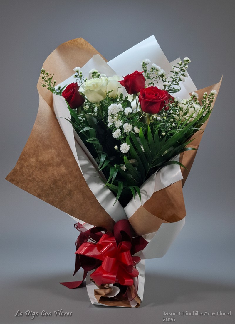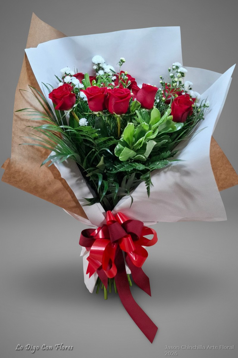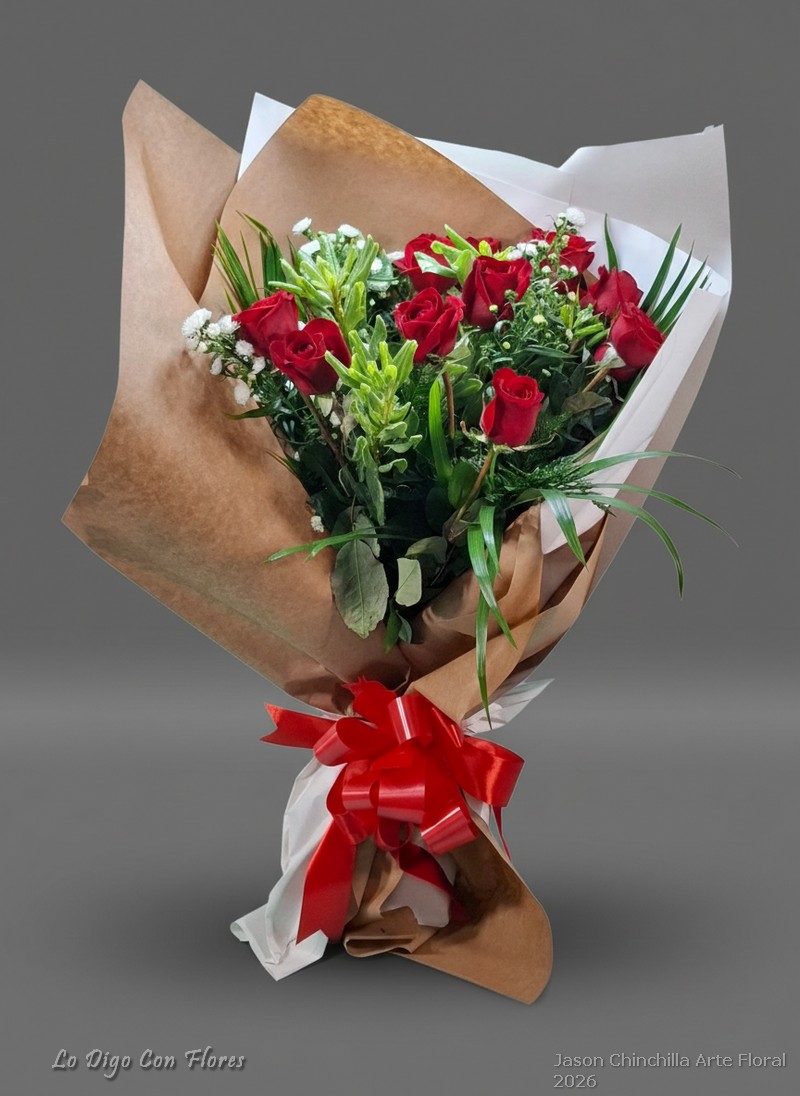 Escoje la cantidad de rosas y te las decoramos con follajes y flores de complemento asi como dos tipos de papel y lazo..